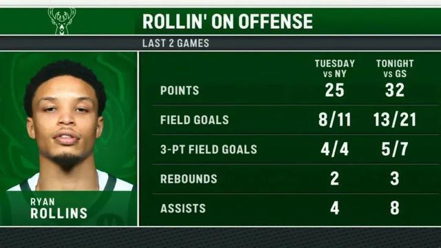 全場比賽,羅林斯登場36分鐘,21投13中,其中三分7中5,砍下32分3籃板8助攻。他已經(jīng)連續(xù)兩場比賽刷新了自己的生涯新高,上一場戰(zhàn)勝尼克斯,羅林斯在字母哥身邊得到25分4助攻4搶斷,三分球4投全中。