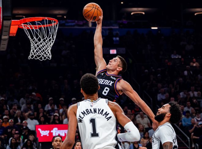 爆冷!太陽(yáng)終結(jié)馬刺5連勝,文班亞馬9+9遭遇滑鐵盧,布克28分13助